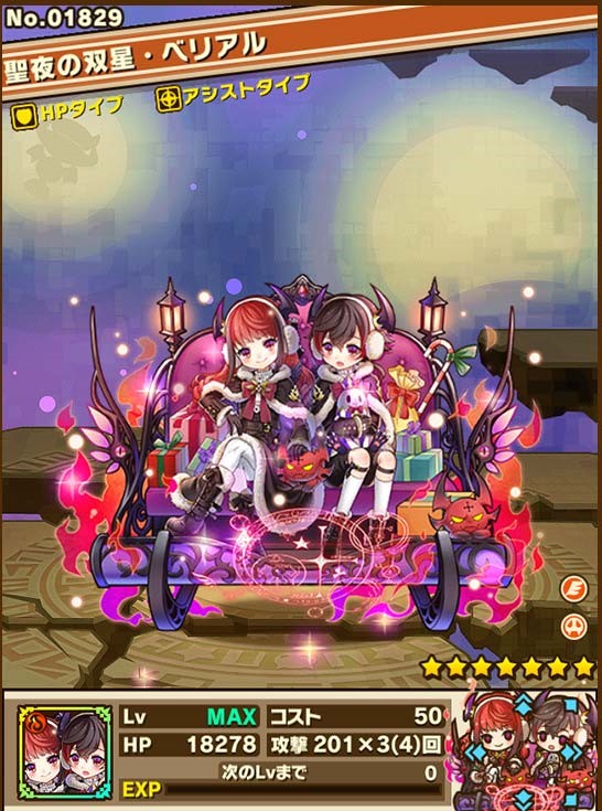 | 自身與☆5 或以下我方棋寵 攻擊力 5 倍 HP 上限增加 2.5 倍 持續每回合1000點HP回復 | ||